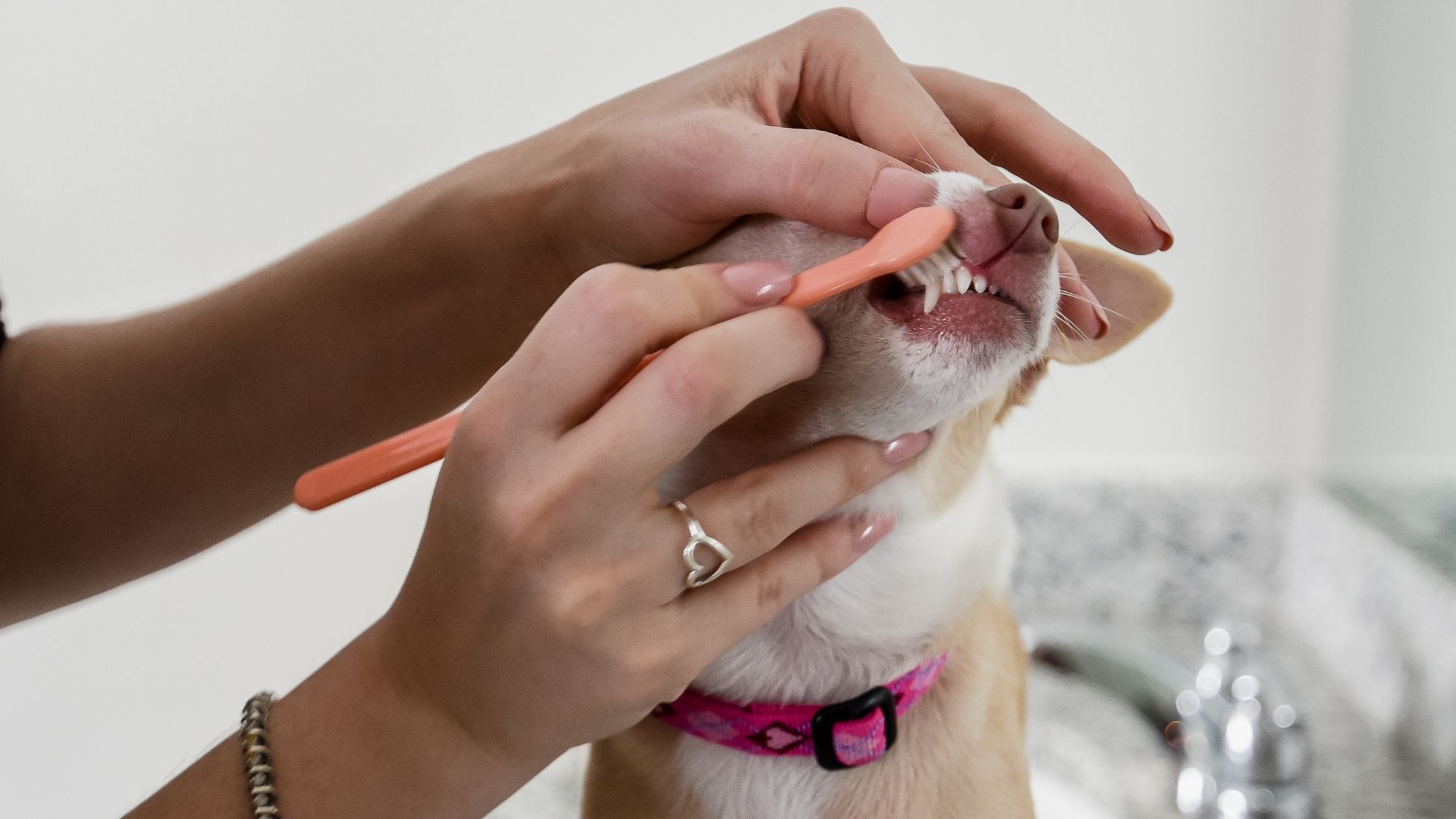 You’ll need dog-formulated toothpaste and a doggy toothbrush.