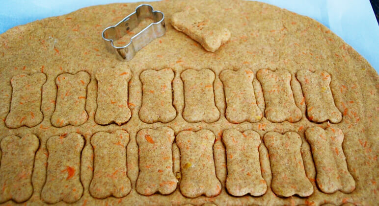 I feel like one of those moms who tries to disguise vegetables with something more appealing in hopes of coaxing her children into eating something nutritious. I’ve tried feeding my dogs carrots before and they spit it right out. However, when I shred the carrots and hid them in these treats, they loved um’ … go figure!!!
