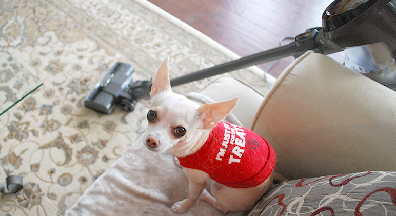 Does your dog get scared when he hears a loud noise? A sudden clap of thunder or booming fireworks display sends many dogs running for a safe hiding spot—curled under the bed, buried beneath the covers, or burrowed behind furniture. Or maybe your dog thinks the noisy vacuum is an attacking monster (that big, mean, cleaning machine is my Chihuahua’s arch-enemy)! So why do they get so scared? It’s partly the initial shock and not understanding what certain sounds mean. But it’s also the result of your dog’s ears being more sensitive to sound than yours!