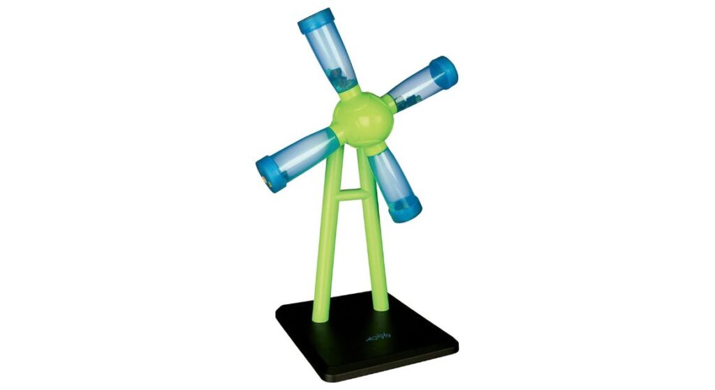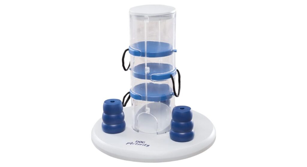 Shaped like a windmill, this puzzle features numerous beakers that you fill with treats/kibble. Your pup has to paw at the beakers to make it spin around in a circle, eventually freeing the food. This is a great intro puzzle for your pup.