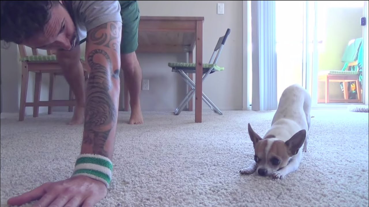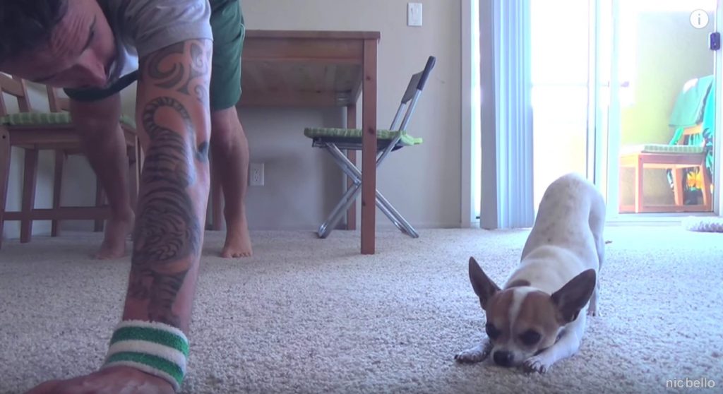 Since my home workouts are one big mess, I was amazed when I first saw this video of a man and his Chihuahua practicing yoga. I have to say, I think this Chihuahua is a better yogi than I am!