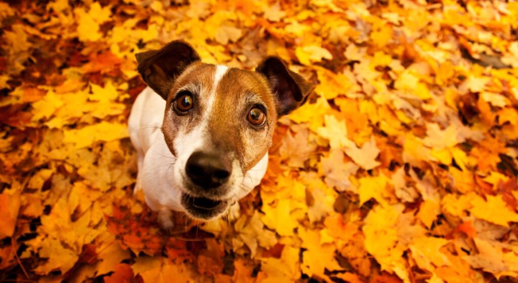 Fall is a beautiful time of year! As the temperature drops, tree leaves turn brilliant shades of red, orange, and yellow. The picturesque landscape certainly calls for some outdoor adventures … and there’s no better sightseeing partner than your dog! While it’s fun for our canine companions to tag along during Fall foliage hikes and spend time with us in the backyard, there’s one thing to watch out for: Leaf piles. I know that sounds silly, but, in this article, we’ll explore the hidden dangers that can lurk within these leafy playgrounds. Plus, tips to keep your canine companion safe!