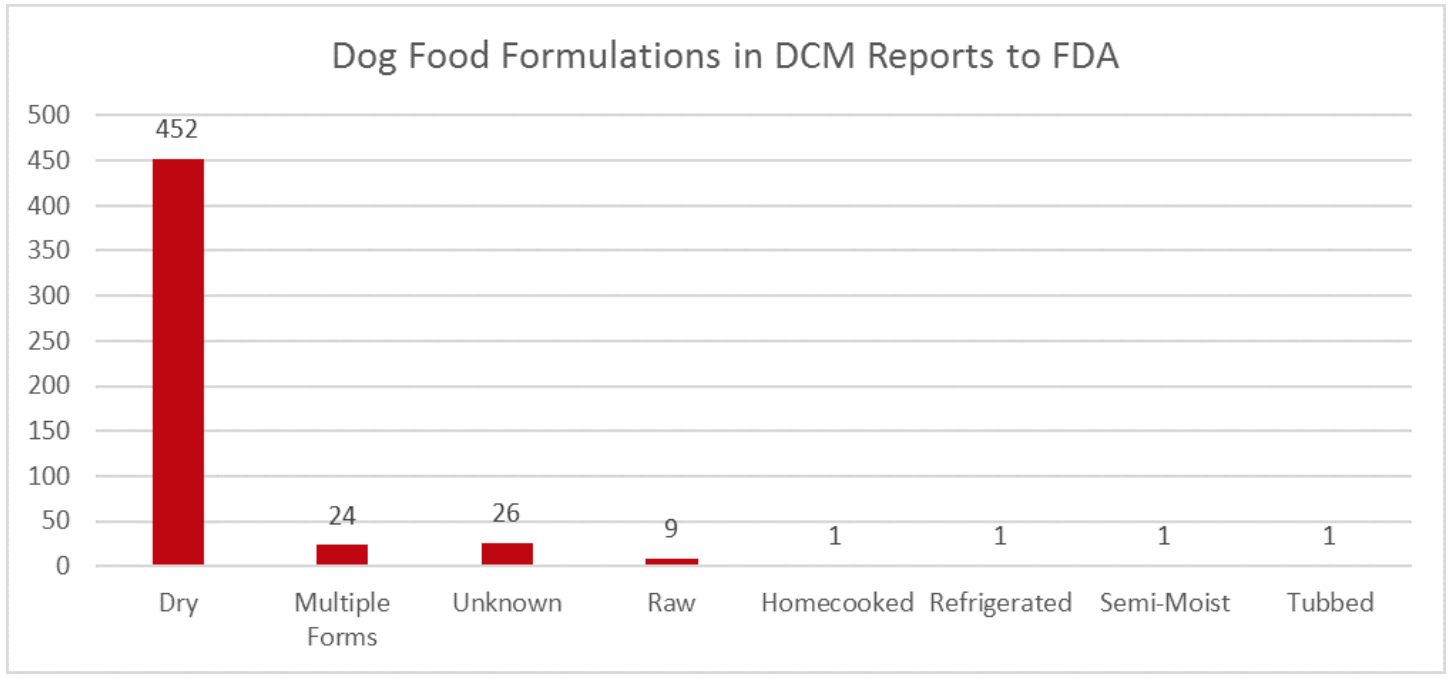 We also now know the majority of reports were for dry dog food formulas. Although, the FDA points out that raw food, semi-moist food, and wet foods were also reported.