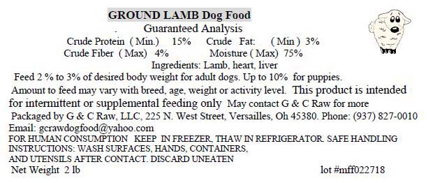 - 2 lb containers of Ground Lamb Dog Food with the Lot #MFF022718