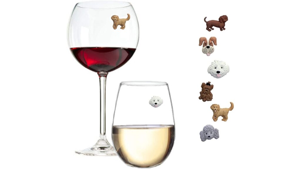 Speaking of drinkware and wine, how cute are these magnetic wine charms for the dog-loving winos in your life? They cling to the side of a wine glass, helping to identify which glass belongs to which guest. These charms come in a set of six and are super affordable. They’re less than $20! So, they’re a great Secret Santa gift. This would also make for a sweet hostess present, a little “I thought of you” gift for a friend, or a nice stocking stuffer.