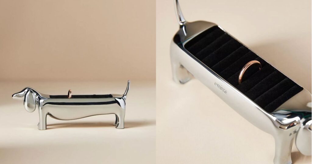 The Dachshund Ring Holder from Anthropologie is a wonderful gift for any dog lover who appreciates functional yet stylish accessories. Shaped like an elegant dachshund, this ring holder is perfect for keeping treasured jewelry safe and organized. Its compact size makes it ideal for a bedside table, bathroom vanity, or kitchen counter, while the sleek design adds a playful yet sophisticated touch to any space. Whether used daily or simply admired as a decorative accent, this charming piece is a thoughtful way to bring a little canine-inspired joy into someone’s home.