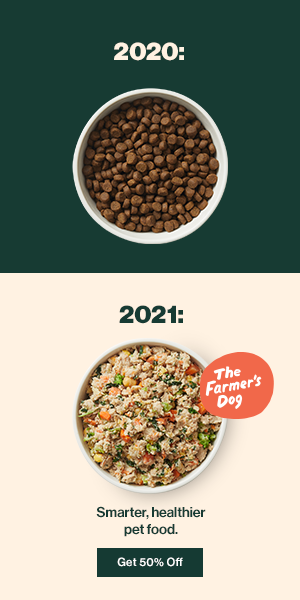 If possible, switch from processed kibble to meals made with fresh meats and veggies. If you’re in the market for new dog food, I’ve been feeding The Farmer’s Dog (a fresh food subscription service that formulates meals with your dog in mind) for just about two years now and my dogs are thriving on it. Basically, you fill out some information about your dog (age, weight, breed, lifestyle, etc.), and The Farmer’s Dog formulates how many calories he should eat each day. They cook the food fresh, it immediately gets packaged, labeled, and shipped over dry ice. You can find out more about it HERE!